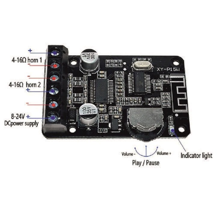 15W + 15W stereo output, ideal for 4Ω/8Ω speakers