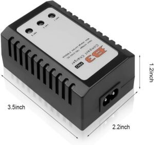 A sleek, pocket-sized balance charger that plugs directly into AC mains (100–240 V, 50–60 Hz) and delivers precise, balanced charging for 2‑cell (7.4 V) and 3‑cell (11.1 V) LiPo packs—perfect for field use, RC models, drones, and emergency battery top-ups.