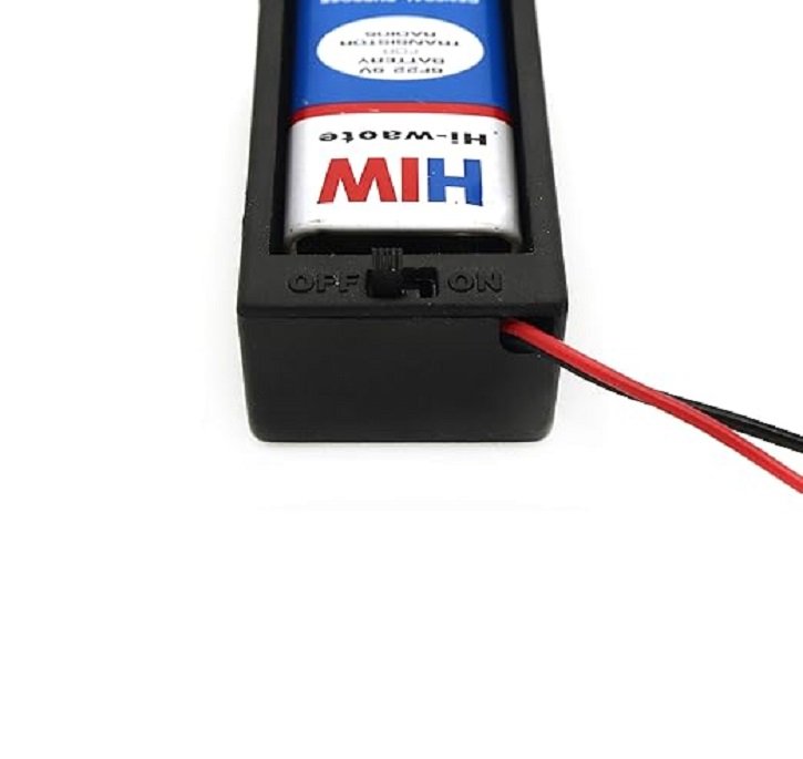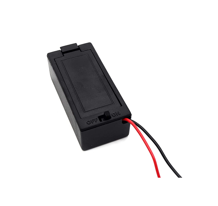 The 9V Battery Holder with ON/OFF Switch is a compact and convenient solution for powering small electronic projects. Designed to securely hold a standard 9V battery, this holder includes an integrated ON/OFF switch, allowing you to control power flow without disconnecting the battery.