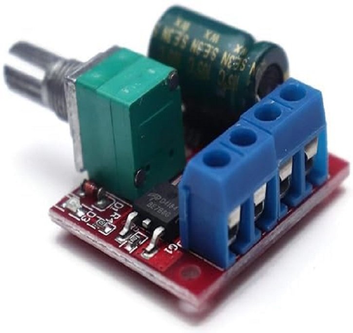 High Efficiency & Low Heat: Minimal energy loss and low heat generation compared to resistive controllers. Built-in Potentiometer Knob: Easily increase or decrease motor speed with a smooth-turn dial.