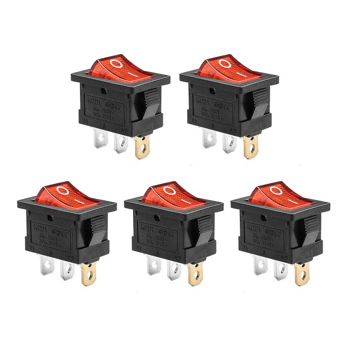 3 Pin SPST Red Rocker Switch with Indicator – ON/OFF (Pack of 5) – RS18