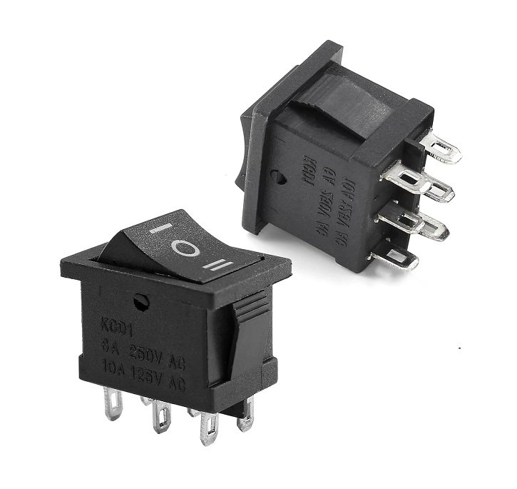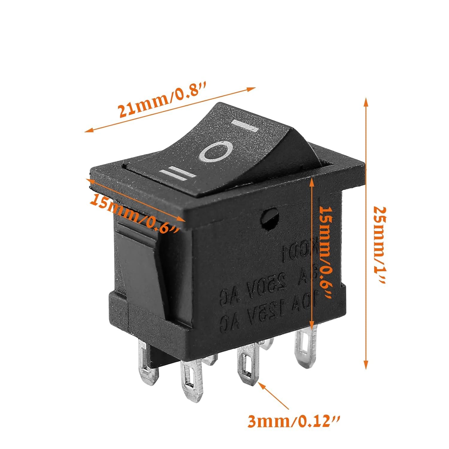 This 6-pin ON-OFF-ON rocker switch provides versatile three-position control, ideal for circuits requiring dual outputs with a center off state. Built with a durable black housing and smooth switching action, it is perfect for DIY electronics, automotive applications, power control panels, and custom projects.
