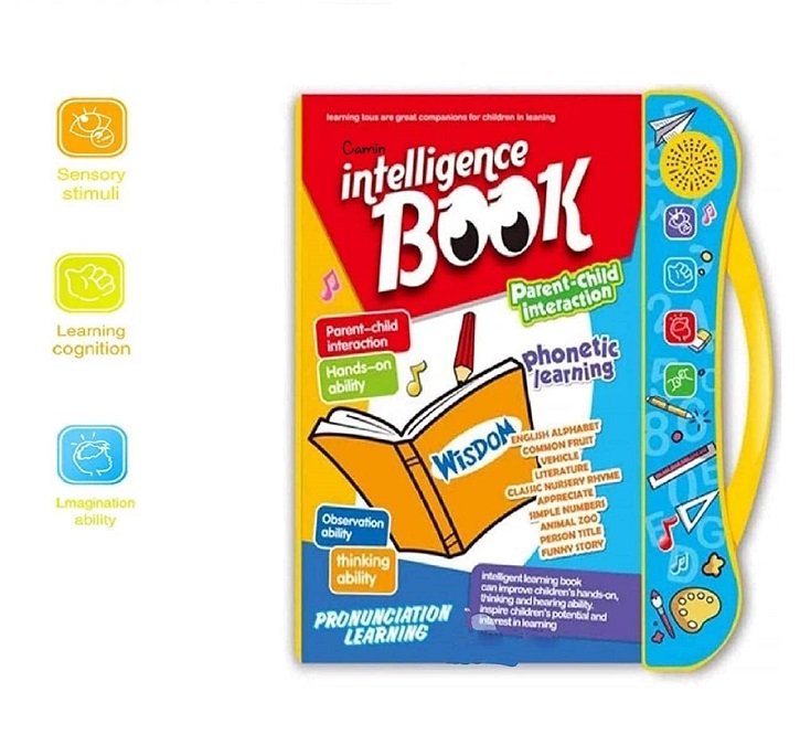 The Intelligence English Letters & Words Sound Book – a fun and educational tool designed especially for children aged 3 to 5 years. With interactive buttons, vivid illustrations, and clear pronunciation sounds, this talking book teaches alphabets, words, and pronunciations in an engaging, playful way.